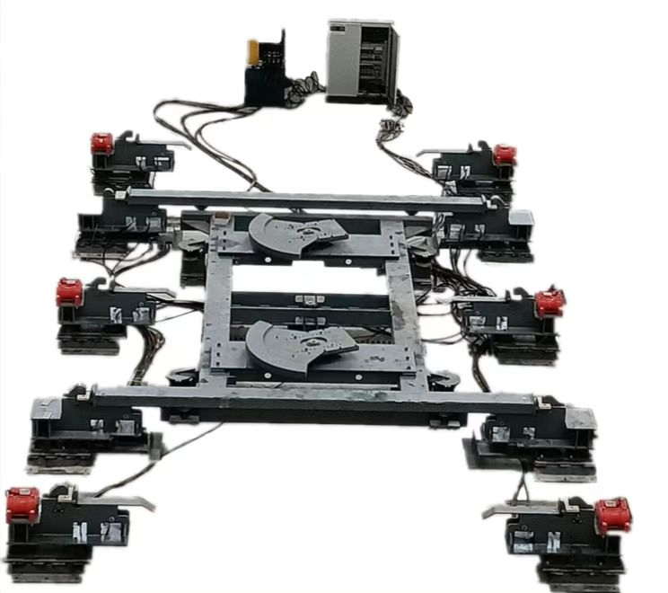 該振動臺為分體式結構,主要由振動系統、液壓夾持系統、模臺、流轉驅動系統及數字化控制系統等構成。工作時,上部模臺可流轉,振動時動態夾持為一體。該振動臺將混凝土密實過程分解為水平低頻鋪開及垂直中高頻定向振動兩個過程,垂直定向振動使能量精確聚焦,混凝土內空氣可以沿最短路徑厚度方向快速排出,并且消除常規振動系統的內耗問題。技術原理先進,振動密實效率高,優勢明顯。
