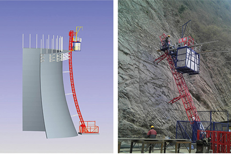 可實現人員、鋼筋、混凝土的垂直運輸;可外掛長度可變平臺,實現人員、物料的水平運輸。廣泛應用于煙囪、水塔、及其他異型建筑。