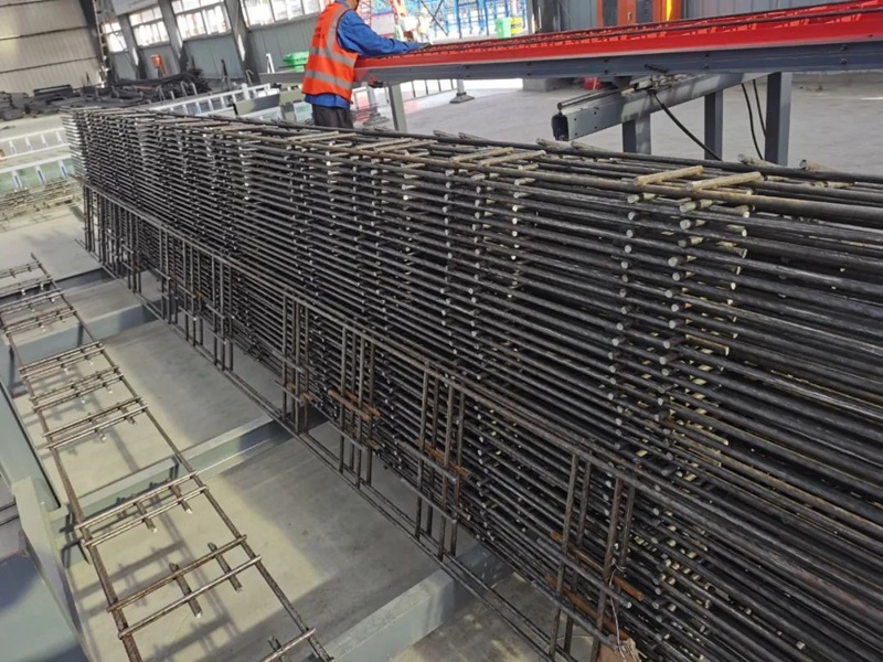 廊坊凱博建設機械科技有限公司(凱博科技)依托北京建筑機械化研究院有限公司在鋼筋加工機械領域多年的技術積累,針對高鐵箱梁預制施工各環節對鋼筋制品的差異化需求,潛心研究、精心攻關,按照中鐵十一局集團橋梁有限公司項目需求,助力新建首個滬渝蓉項目武宜段WYZQ-5標荊門鐘祥制梁場。其中鋼筋加工數字化項目,包含GQX-300數控鋼筋剪切生產線、GWXL2-32D數控彎曲中心、GWXL4-25D數控彎曲中心、GQX-GWX-25數控鋼筋剪切彎曲一體生產線、GGJ12數控鋼筋彎箍機、GT5-12調直機(32米)、GTWQ12調直五機頭、HJDW12焊接定位網等多種設備,可定制化生產高鐵箱梁預制施工各環節多種鋼筋制品。